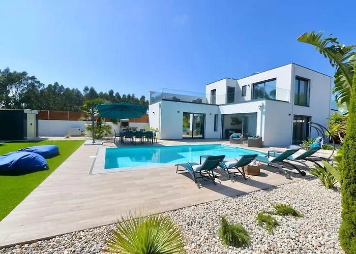A Villa Serena - Exquisite Villa With Private Heated Pool São Martinho do Porto está localizada a uma distância de 2.3 km da Praia de São Martinho do Porto e dispõe de piscina privada, garantindo uma estadia relaxante. Os hóspedes podem desfrutar de ciclismo nesta propriedade, localizada a uma distância de 10 minutos de carro da Praia do Salgado.